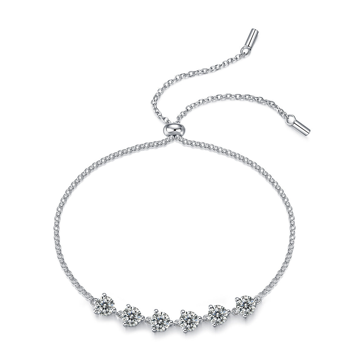 Glojewels Classical Adjustable 3ctw White Moissanite Round Cut Silver Chain Bracelet